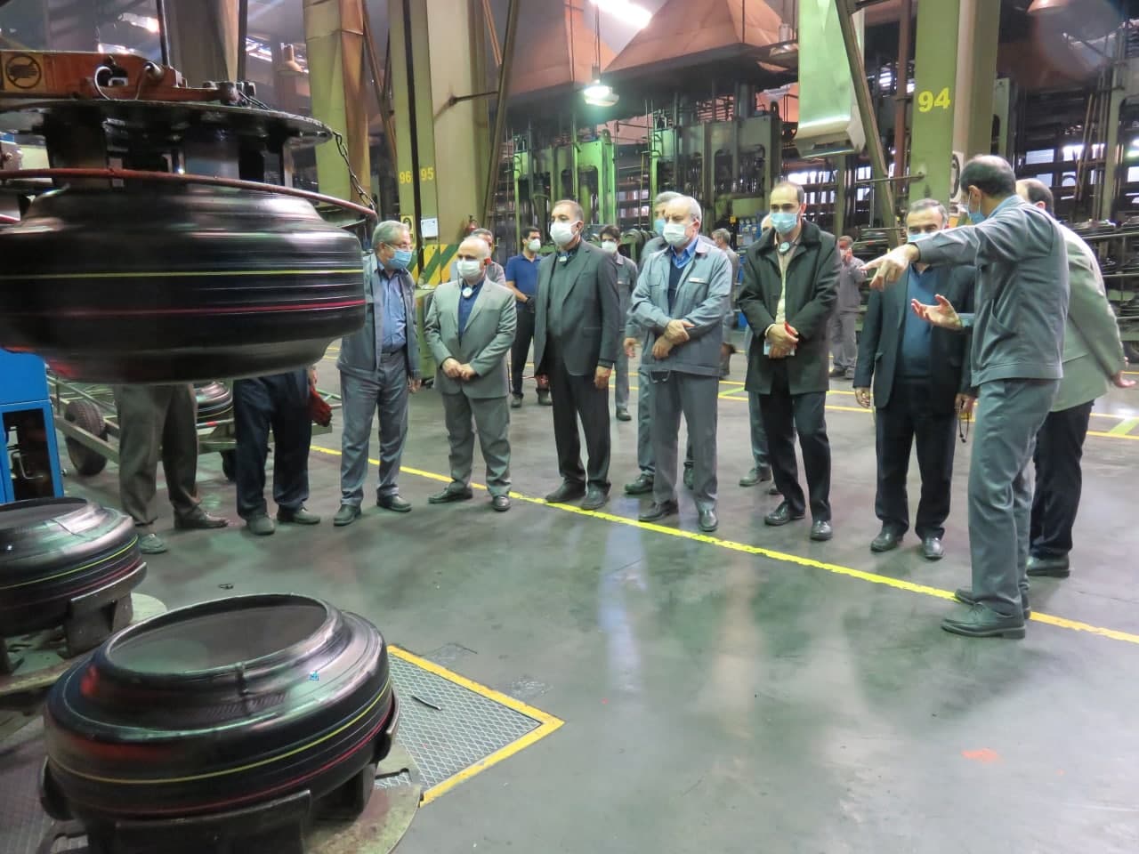به گزارش روابط عمومی شرکت کویر تایر ؛ آقای دکتر سید محمد مهدی هادوی مدیرکل ماشین آلات وزارت صمت، آقای مهندس بهنام امیری رئیس دفتر امور پروژه های شرکت گروه سرمایه گذاری امید، آقای مهندس کیومرث مبلغ ناصری مدیرعامل شرکت آسیانا، آقای مهندس سعید نیک ضمیر مدیر واحد کسب و کار شرکت مدیریت سرمایه گذاری امید از خط تولید کارخانه بازدید و از نزدیک توانمندی ها و نوآوری های انجام شده در ساخت ماشین آلات و تعمیرات صنعت تایر آشنا و در جریان اقدامات صورت گرفته قرار گرفتند.