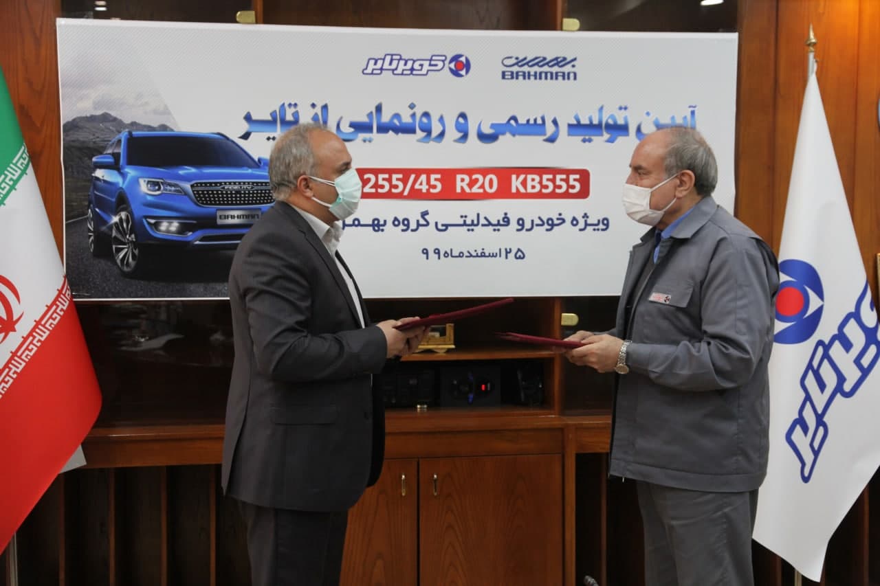 در مراسمی با حضور مدیران ارشد گروه بهمن، مدیرعامل شرکت کویرتایر از تایر255/45ZR20 KB555 رینگ 20 با نام تجاری BAHMAN در این کارخانه رونمایی و تولید رسمی آن آغاز شد.