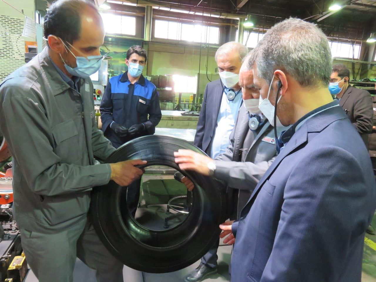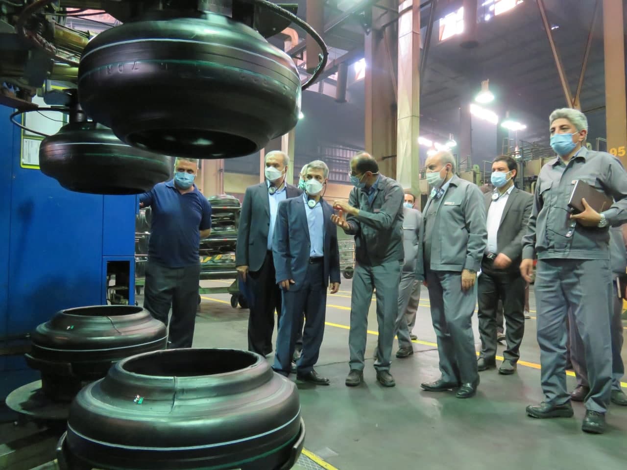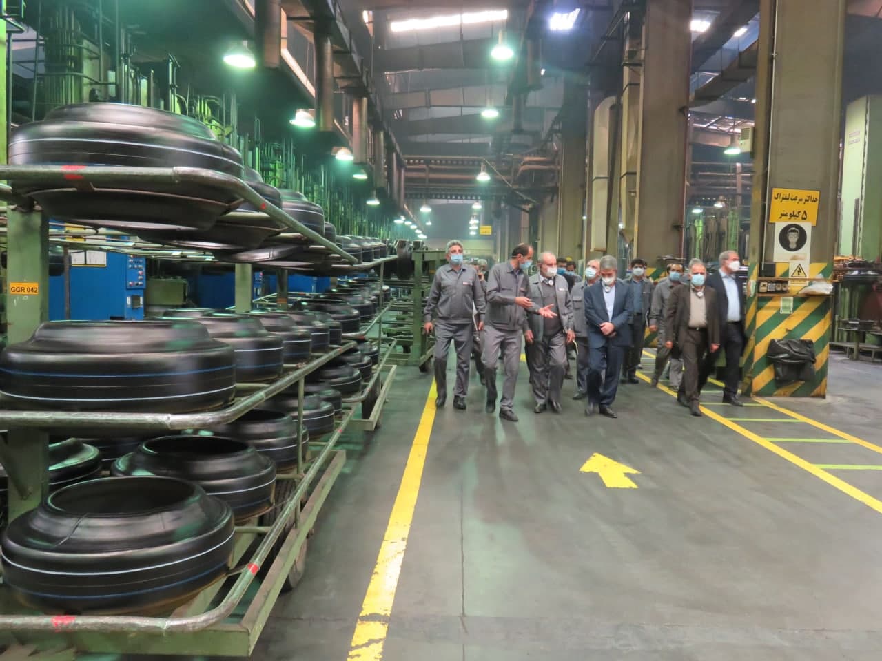 آقای دکتر اسدی معاون اداری و مالی هلدینگ امید و رئیس هیات مدیره شرکت کویرتایر به اتفاق آقایان زینلی، نائبی، خزاعی، سلطانی، مدیرعامل و اعضای هیات مدیره شرکت کویرتایراز خط تولید و بخشهای مختلف این کارخانه بازدید کردند.
