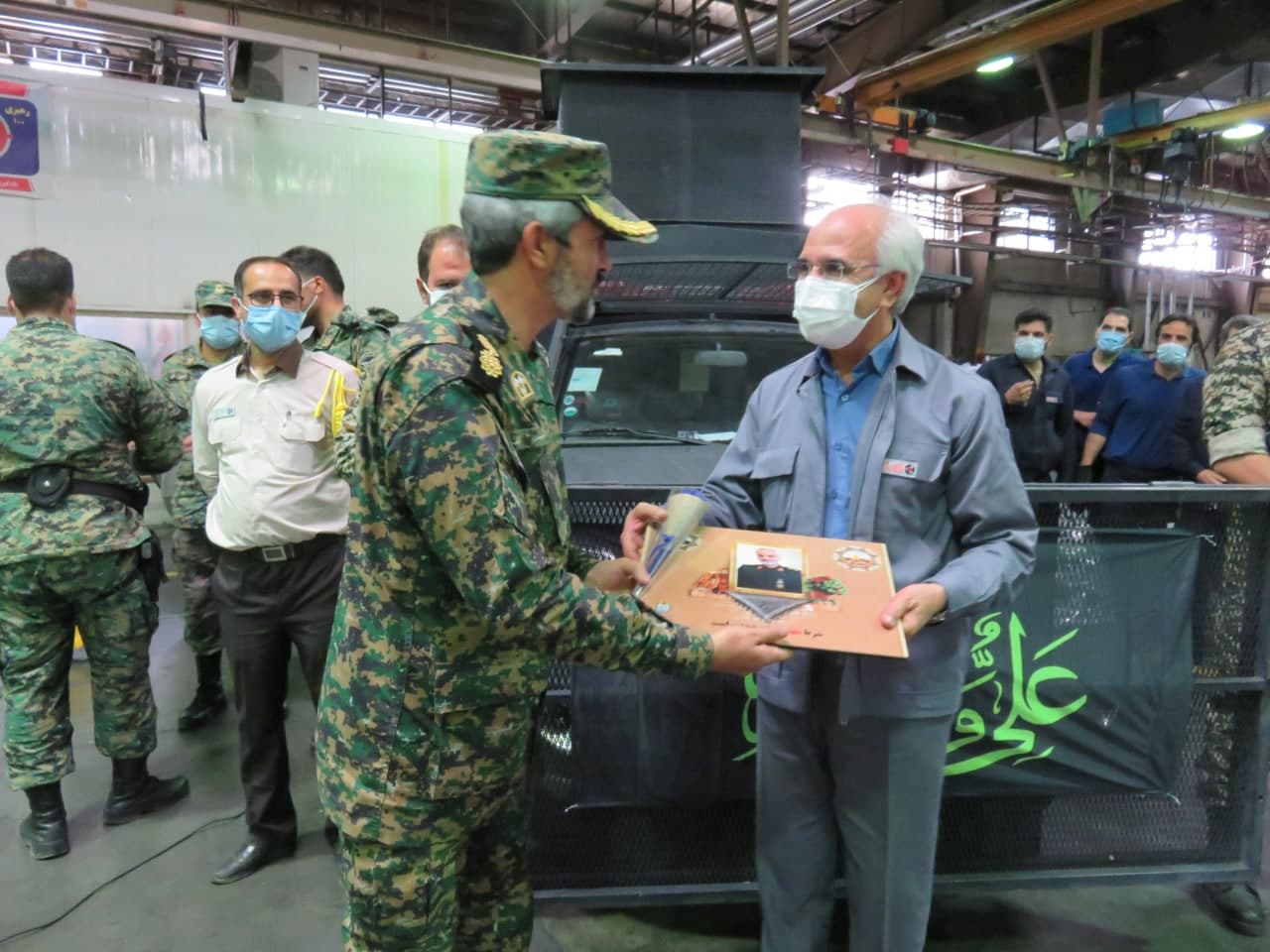 در این بازدید همچنین به پاس قدردانی از جامعه کار وتلاش شرکت کویر تایر ؛ تمثال سردار سلیمانی نیز به آقای مهندس سید رضا شمس آبادی مدیر کارخانه کویر تایر از سوی سرهنگ خضری اعطا شد.