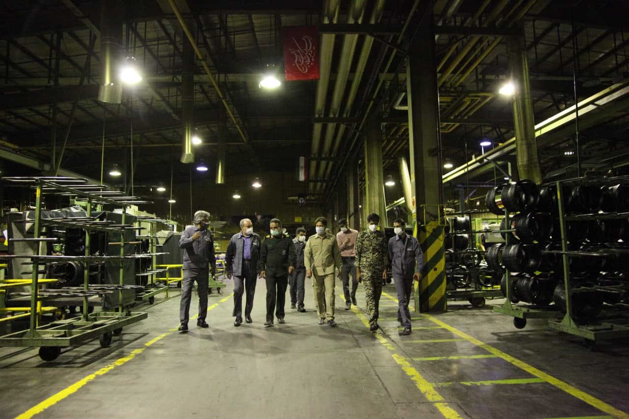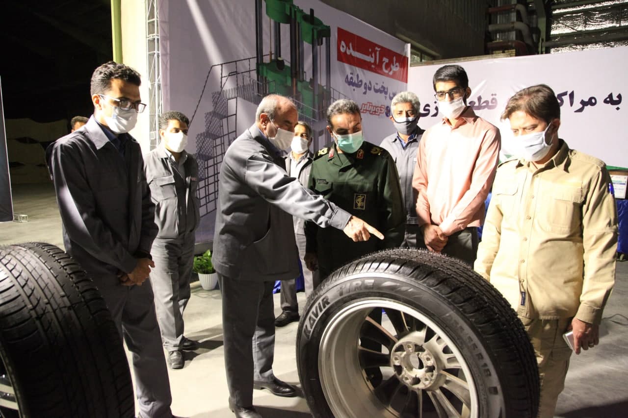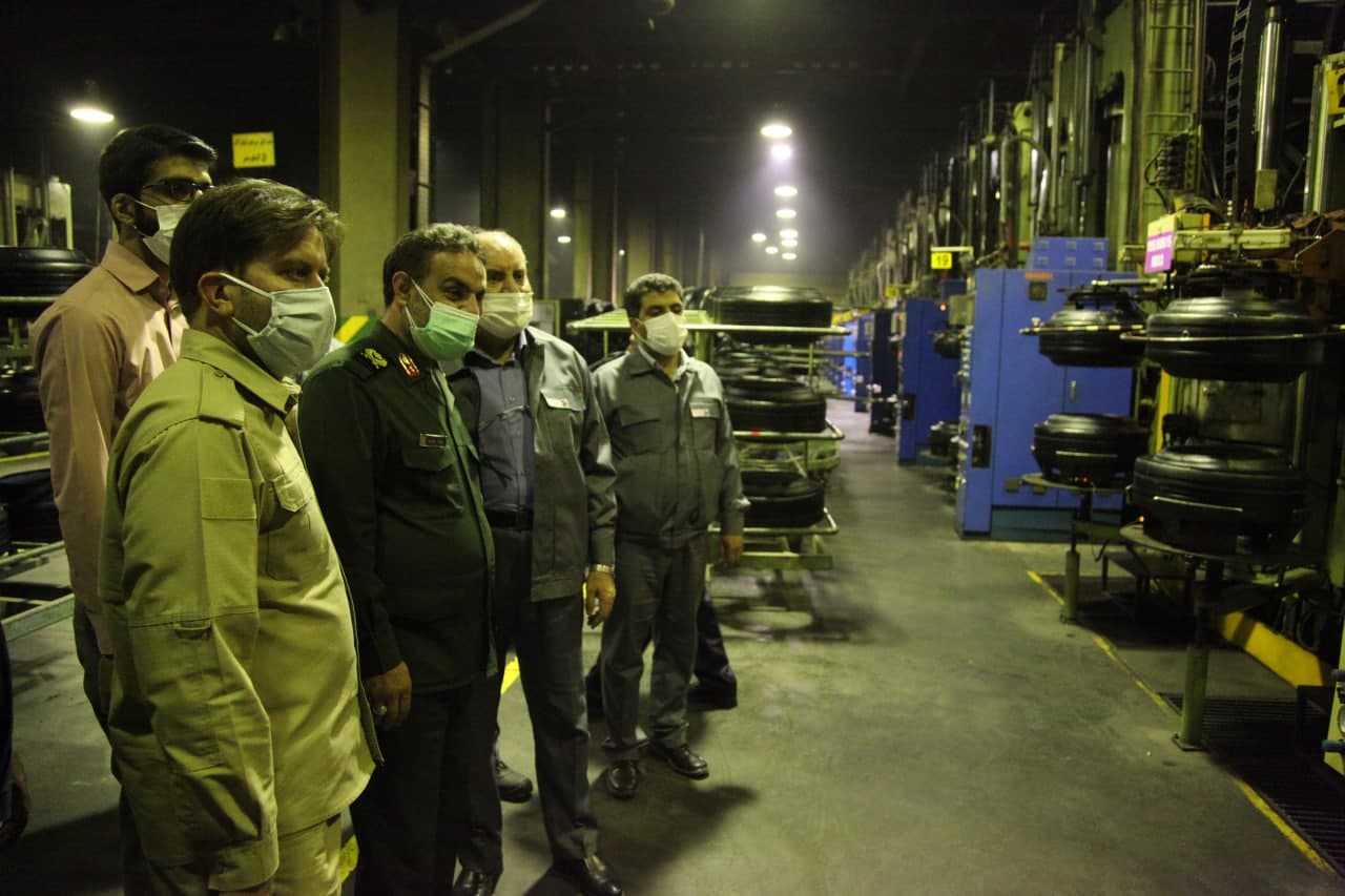 رئیس سازمان بسیج سازندگی کشور وهیات همراه سپس از نمایشگاه داخلی سازی قطعات وخط تولید کارخانه بازدید وباروند تولید تایر آشنا شدند