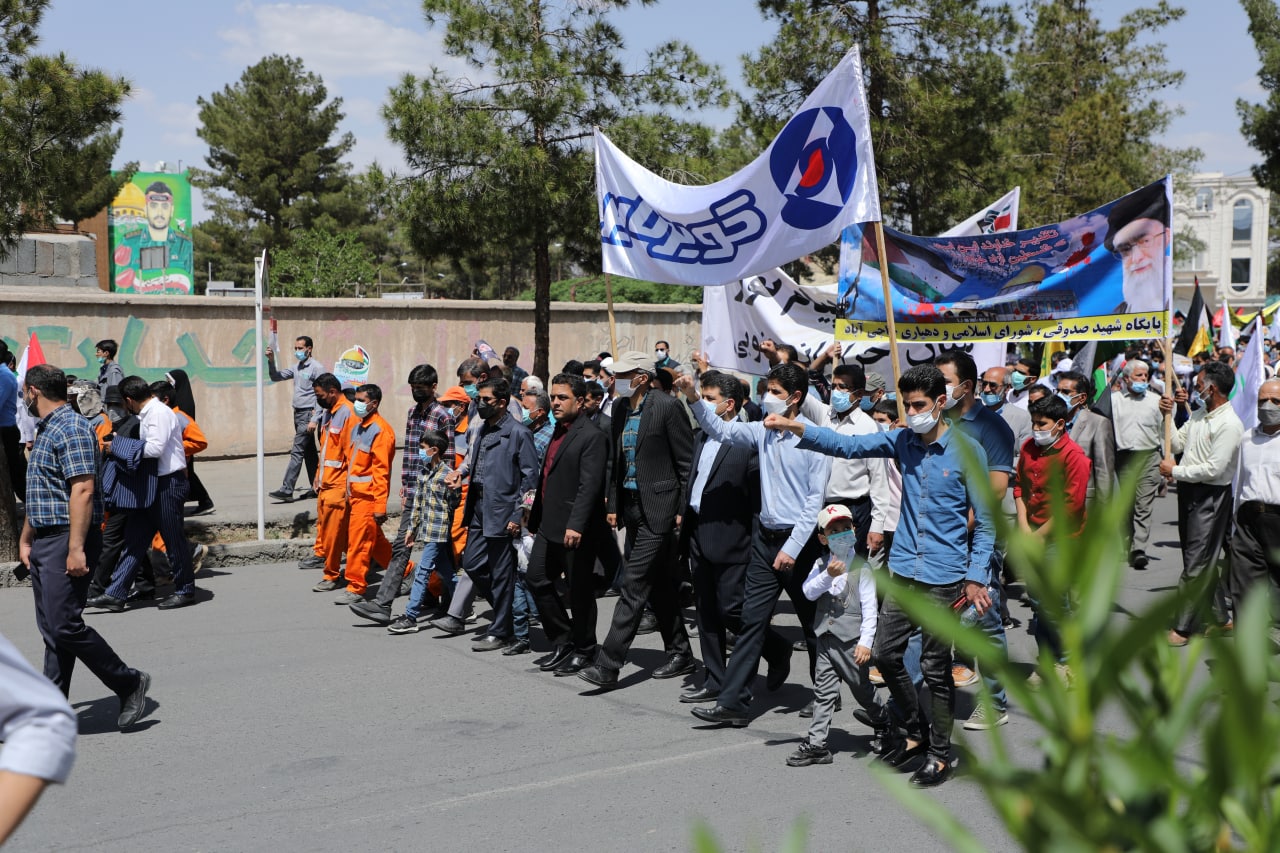 جمعی از کارکنان شرکت کویر تایر نیز همزمان با سراسر کشور در مراسم روز جهانی قدس حاضر شدند و با شعارهای «مرگ بر آمریکا» و «مرگ بر اسرائیل» انزجار خود از اقدامات رژیم غاصب صهیونیستی را به نمایش گذاشتند.