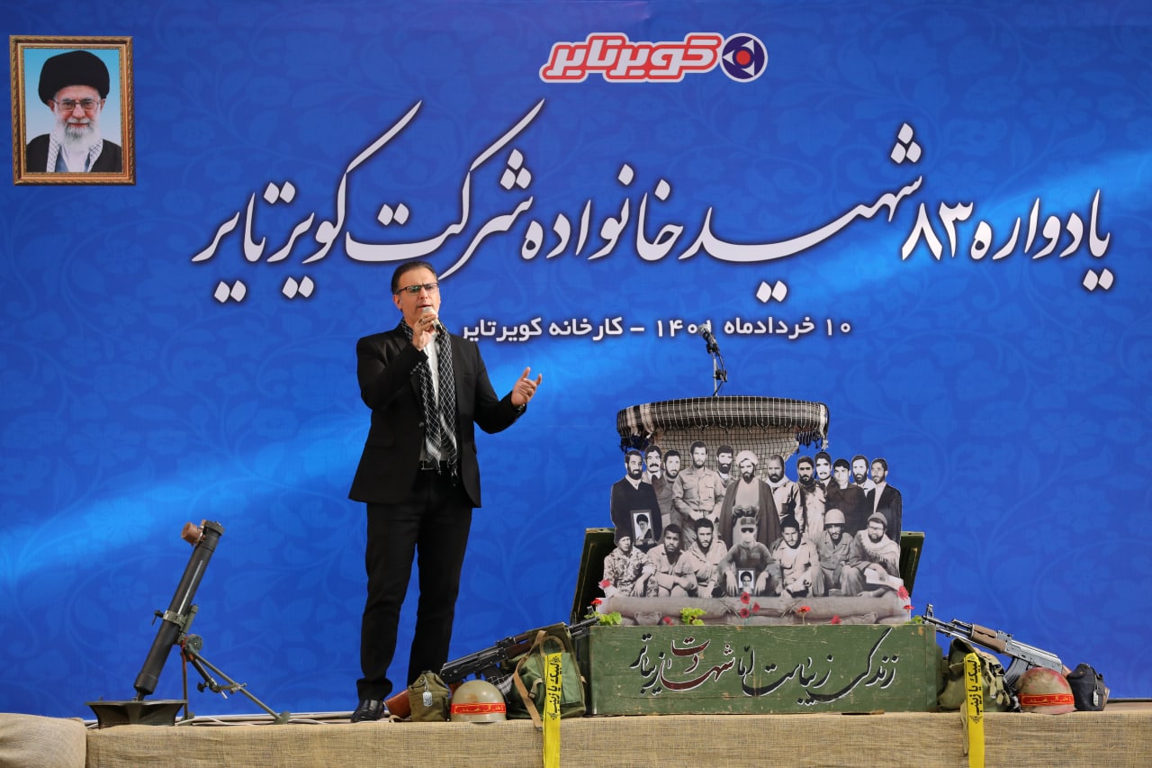 یادواره 83 شهید خانواده بزرگ شرکت کویرتایر با حضور خاندان معظم شهدا، حجت الاسلام والمسلمین نوفرستی قائم مقام نماینده ولی فقیه در خراسان جنوبی، سردار مهدوی فرمانده سپاه انصارالرضا(ع)، حجت الاسلام عزیزی مدیرکل بنیاد شهید و امور ایثارگران ،اشرفی مدیرکل تعاون، کار و رفاه اجتماعی خراسان جنوبی، مهندس زینلی مدیرعامل شرکت کویر تایر، جمعی از فرماندهان نظامی وانتظامی و مدیران دستگاههای اجرایی استان در سالن شهید سلیمانی کارخانه کویرتایر برگزار شد.