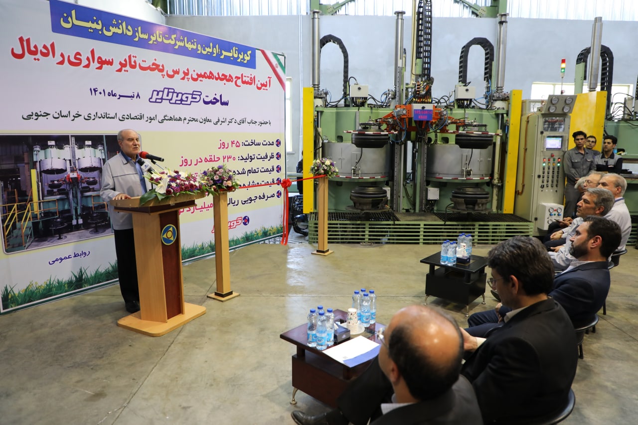 درمراسمی با حضور دکتر اشرفی سرپرست معاونت هماهنگی امور اقتصادی استانداری خراسان جنوبی، هجدهمین پرس پخت تایر سواری ساخته شده در کارخانه کویرتایر به بهره برداری رسید.