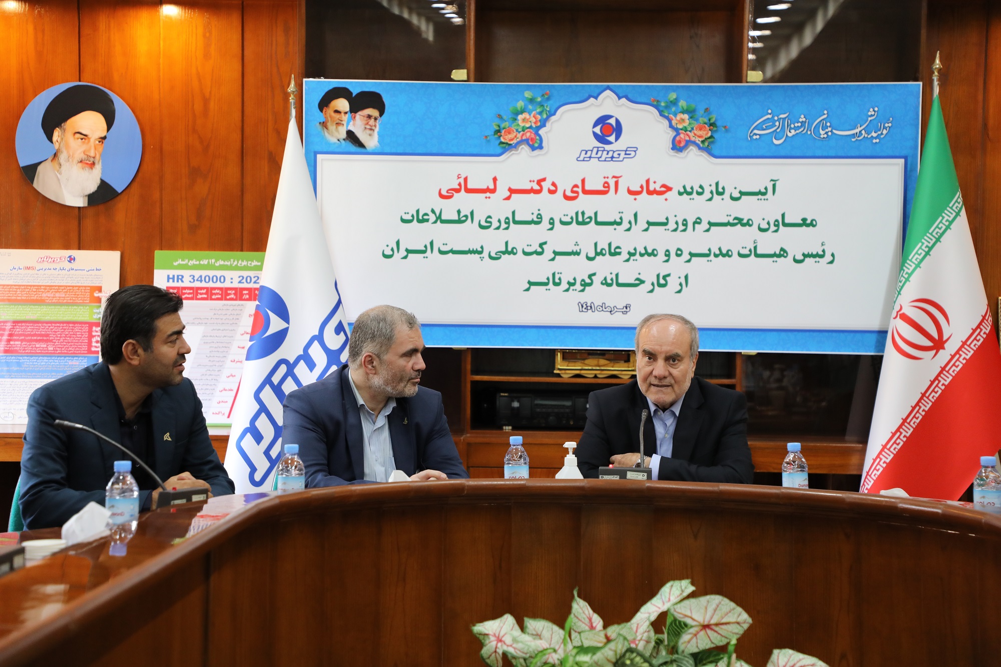 محمود لیائی معاون وزیر و رییس هیئت مدیره و مدیر عامل شرکت ملی پست ایران به همراه الهامی مدیرکل پست استان خراسان جنوبی از کارخانه کویرتایر بازدید و با روند تولید از نزدیک آشنا شدند .