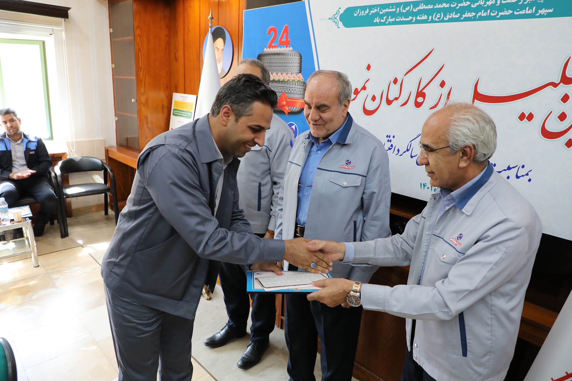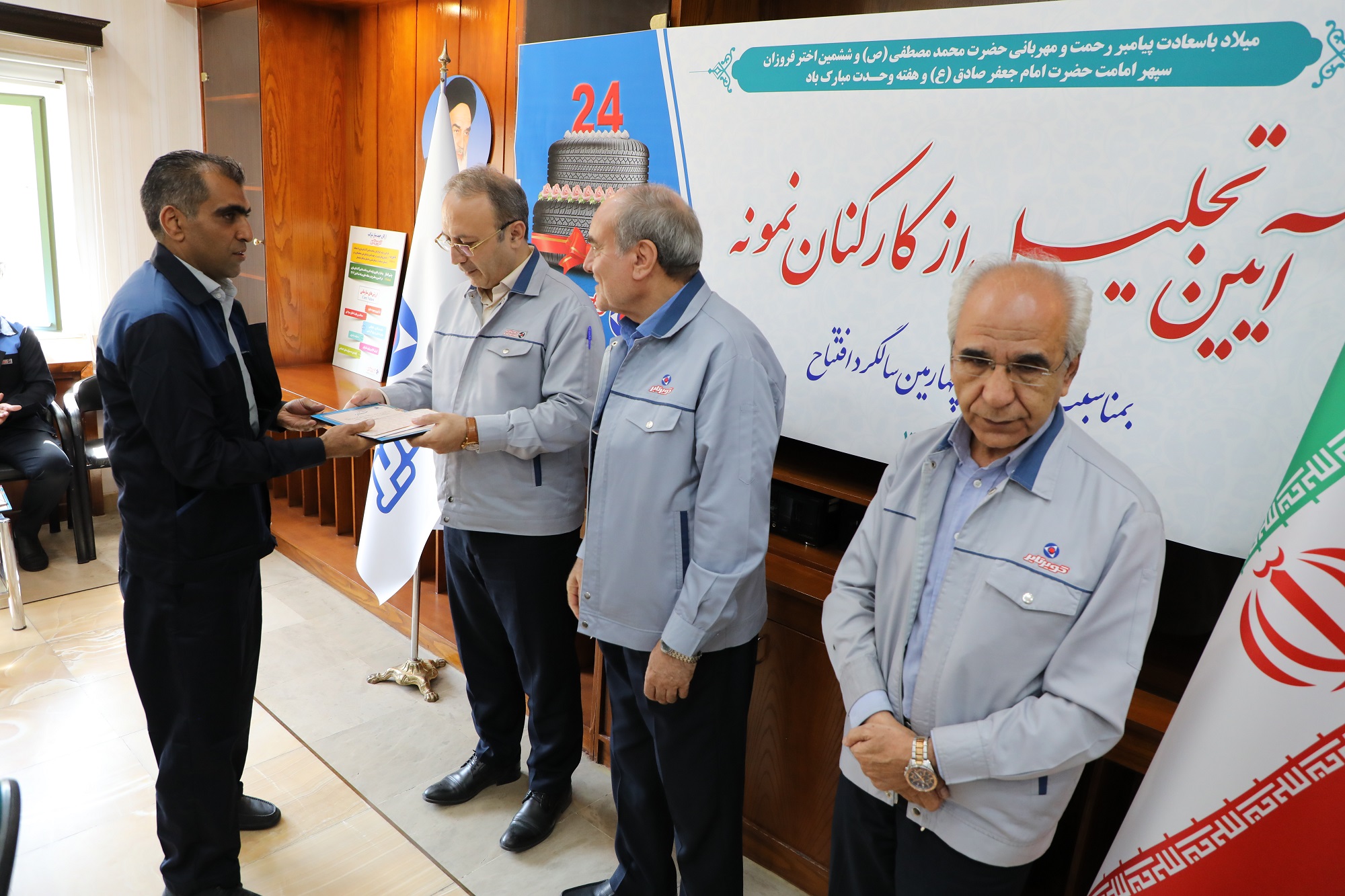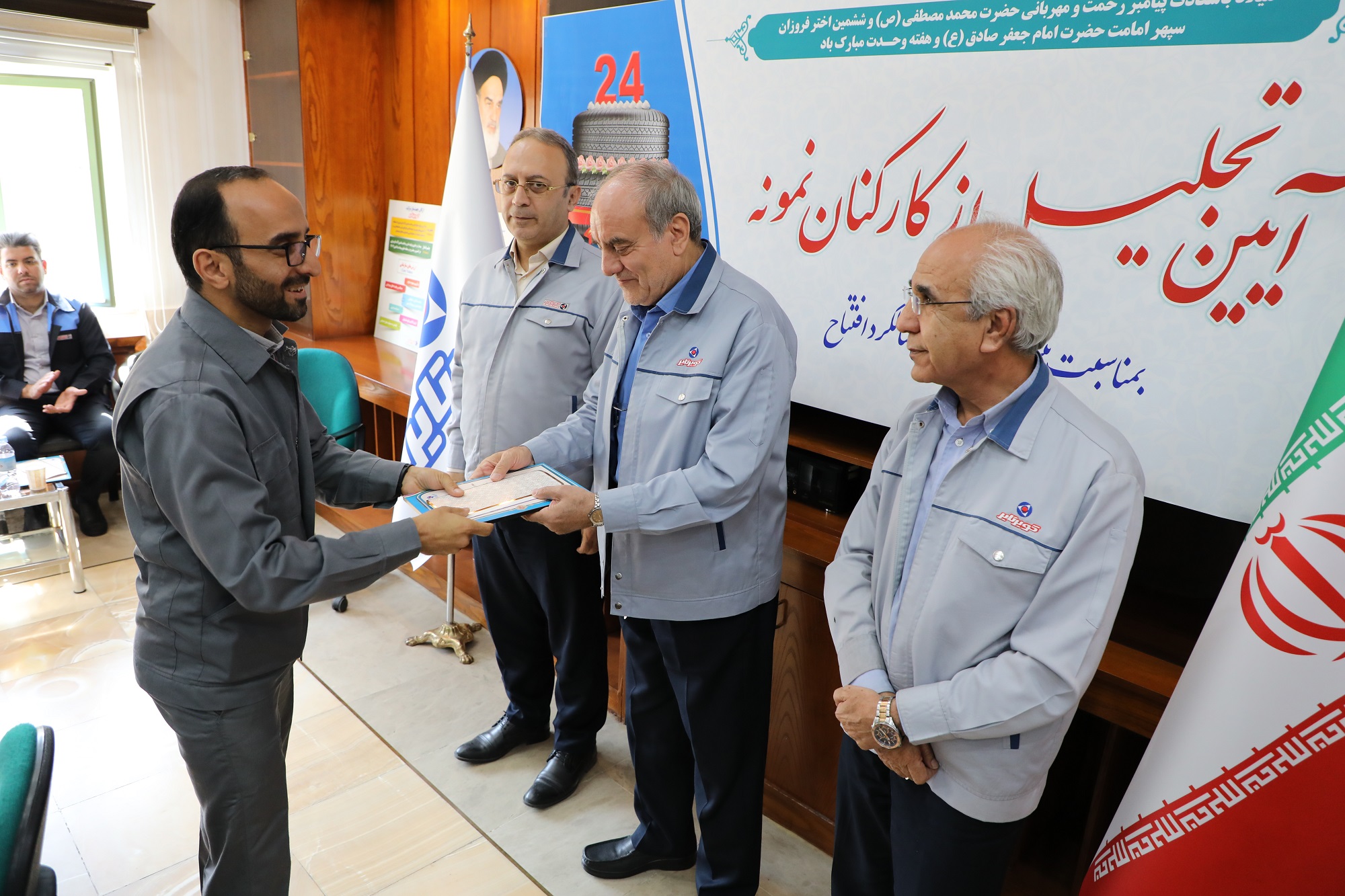 در مراسمی بمناسبت بیست چهارمین سالگرد افتتاح کویرتایر و با حضور آقای مهندس زینلی مدیر عامل، آقای مهندس نائبی عضو هیات مدیره از 30 نفر کارشناسان و کارکنان نمونه این شرکت تجلیل شد