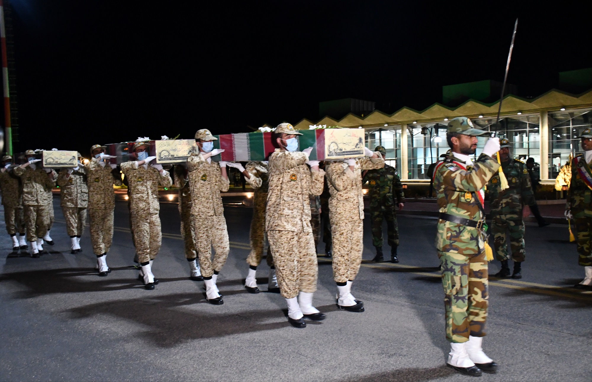 پیکر مطهر 6شهید گمنام دوران دفاع مقدس از طریق فرودگاه بینالمللی شهید کاوه بیرجند وارد خراسان جنوبی شد.