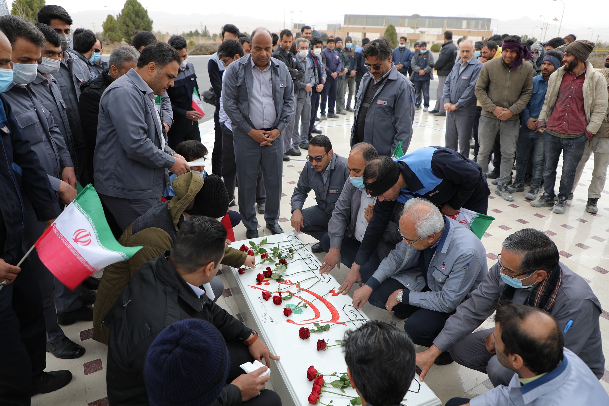 همزمان با فرا رسیدن 12 بهمن سالروز ورود تاریخی حضرت امام (ره) به میهن اسلامی و آغاز جشن های چهل و چهارمین فجر انقلاب، مراسم گرامیداشت این روز به همراه آیین عطر افشانی و تجدید پیمان با امام (ره) و شهدای والا مقام در یادمان شهید گمنام کارخانه کویرتایر برگزار شد.
