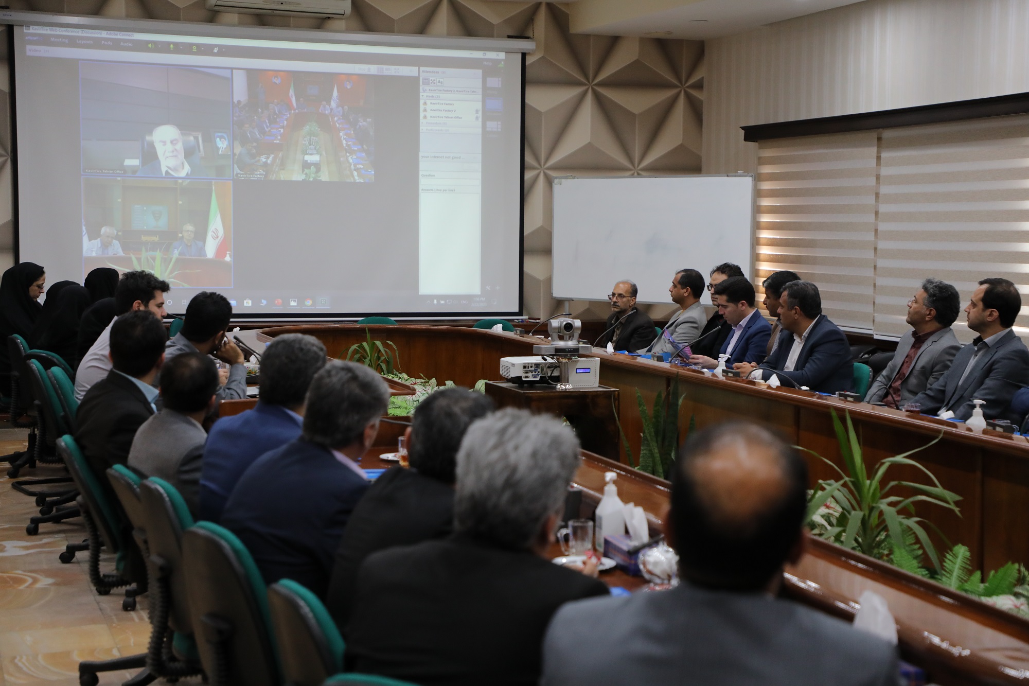 در این بازدید ودر ارتباط ویدئو کنفرانسی اقای مهندس زینلی مدیرعامل شرکت کویرتایر ضمن خیرمقدم ،گزارشی از فعالیت ها، افتخارات ودستاوردهای شرکت کویرتایر ارائه کرد.