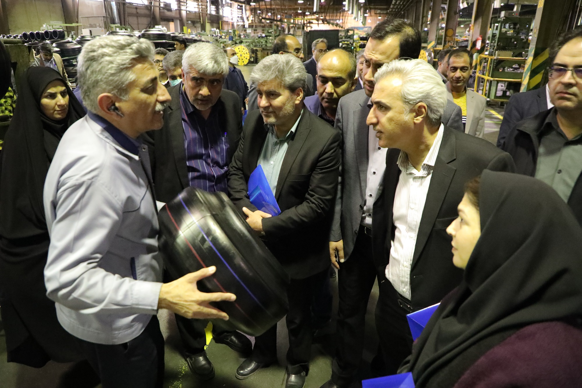در این بازدید که با حضورآقای شرفی مدیرکل بهزیستی استان و تنی چند از معاونین،مدیران و روسای ستادی و ادارات شهرستان های مختلف همراه بود ، بازدید کنندگان در ابتدای ورود به کارخانه کویرتایر بر سر مزار شهید گمنام حاضر و با قرائت فاتحه به مقام والای این شهید ادای احترام کردند و سپس باحضور در سالن کنفرانس اداری مستندی از نحوه شکل گیری و تاسیس شرکت کویرتایر ارائه و در پایان از خط تولید بازدید و از نزدیک در جریان روند تولید تایر قرار گرفتند.