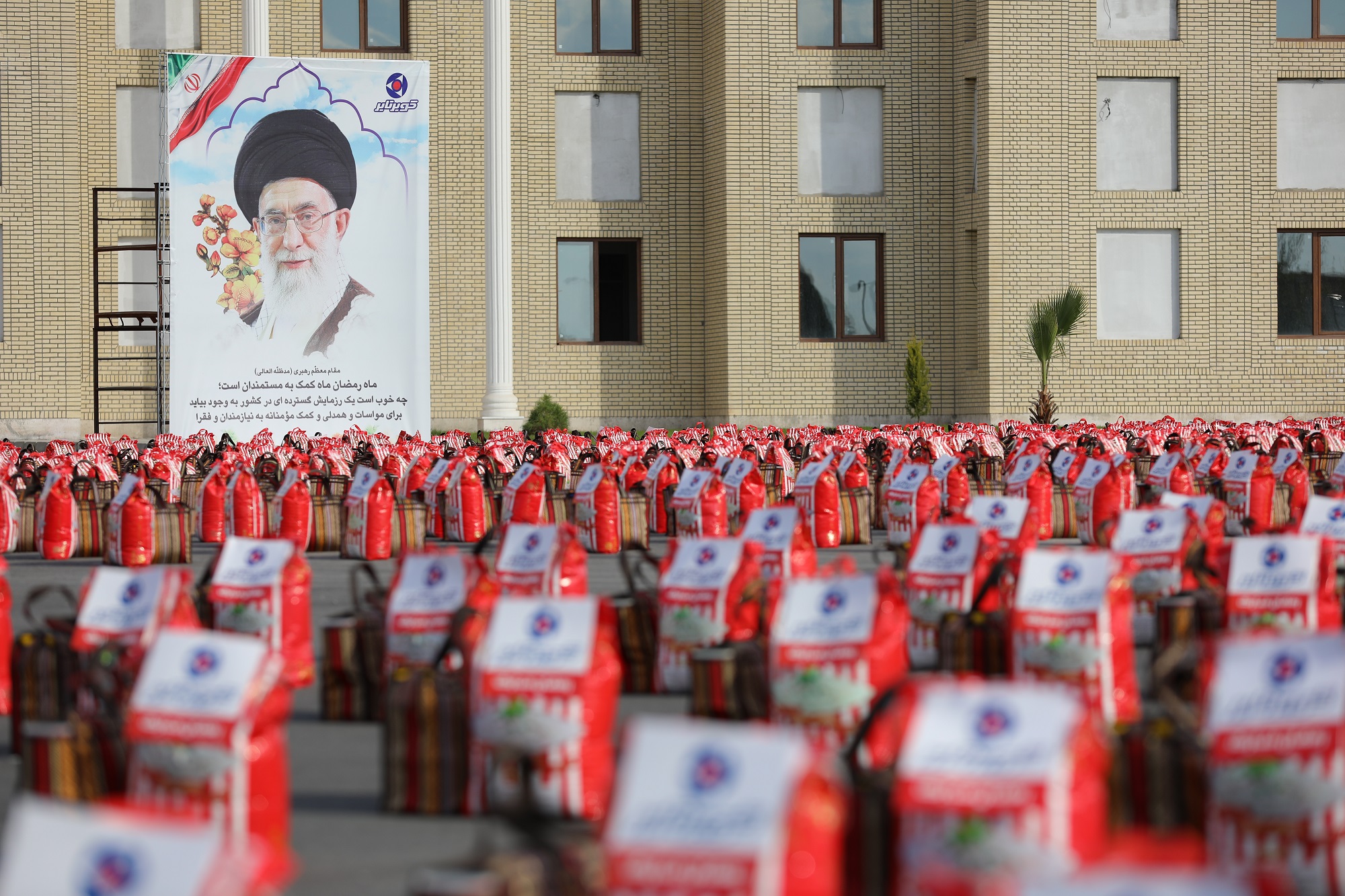 این بسته های اهدایی شامل برنج، روغن، ماکارونی، رب، قند و چای است.