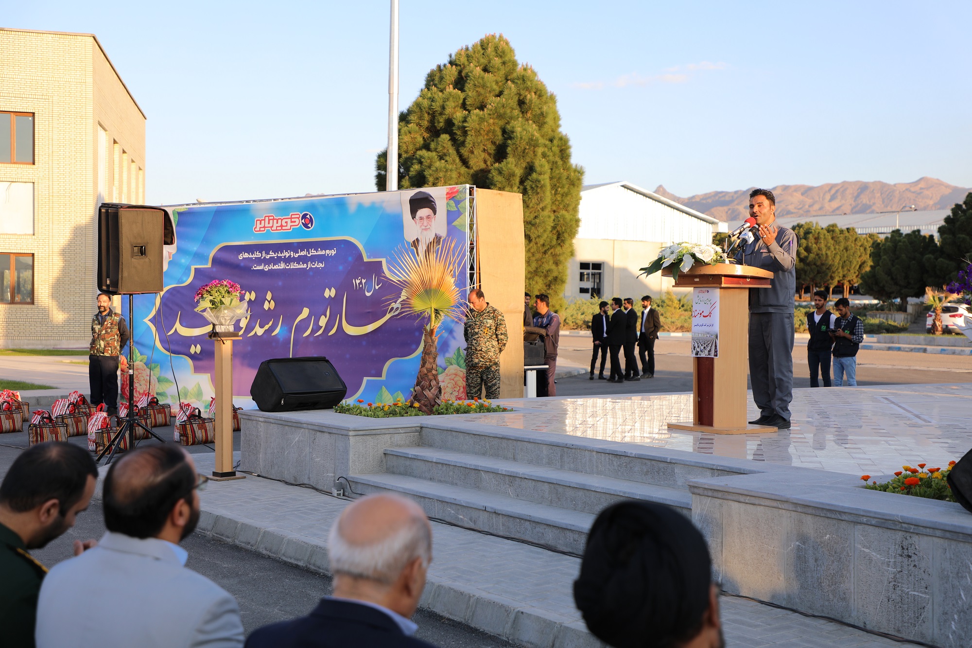 به گزارش روابط عمومی شرکت کویرتایر؛ این مراسم با حضور حجت الاسلام نوفرستی قائم مقام نماینده ولی فقیه در خراسان جنوبی، حجت الاسلام جلالی امام جماعت کارخانه، سردار مهدوی فرمانده سپاه انصارالرضا(ع) ، سردار مولوی از پیشکسوتان دوران دفاع مقدس ، فرمانده انتظامی و جانشین مرزبانی استان، رئیس پلیس امنیت اقتصادی و روسای پلیس راه و راهور استان، مدیرکل تعاون، کار و رفاه اجتماعی و معاونان، رئیس بنیاد ملی نخبگان، مدیران و معاونان بانک های صادرات، سپه و رفاه کارگران و جمعی از مسئولان استان و شهرستان برگزار شد.