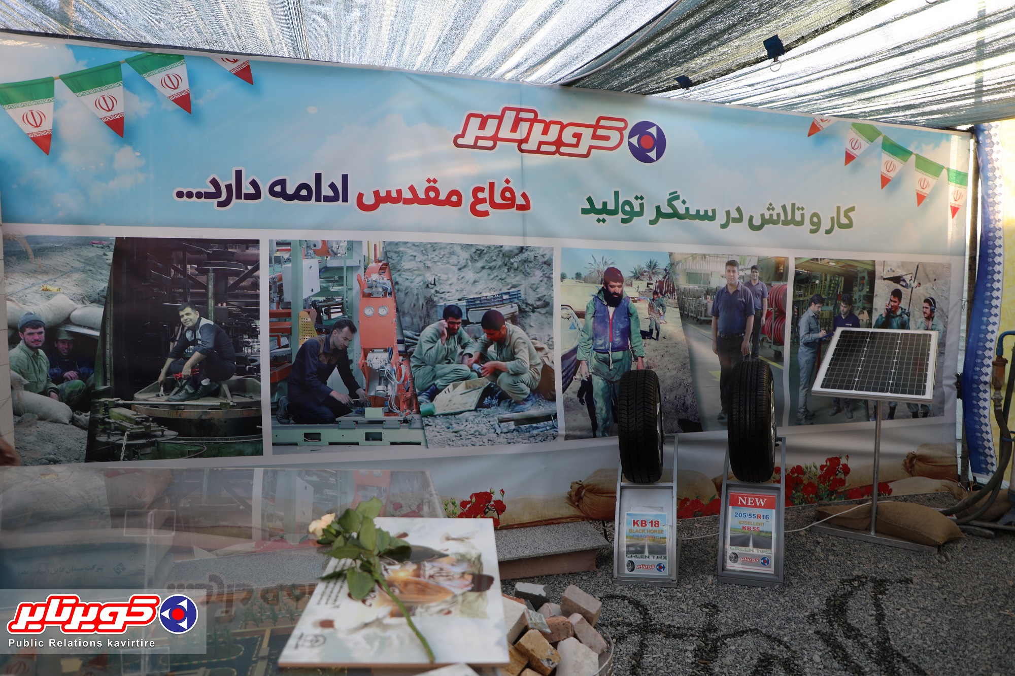 در این نمایشگاه غرفههایی توسط اقشار مختلف بسیج با هدف ارائه گزارش عملکرد و خدمات مرتبط برپا شده است و شرکت کویرتایر هم با ارائه نمونه هایی از محصولات خود در غرفه سازمان بسیج کارگری استان در این نمایشگاه حضور و مشارکت دارد