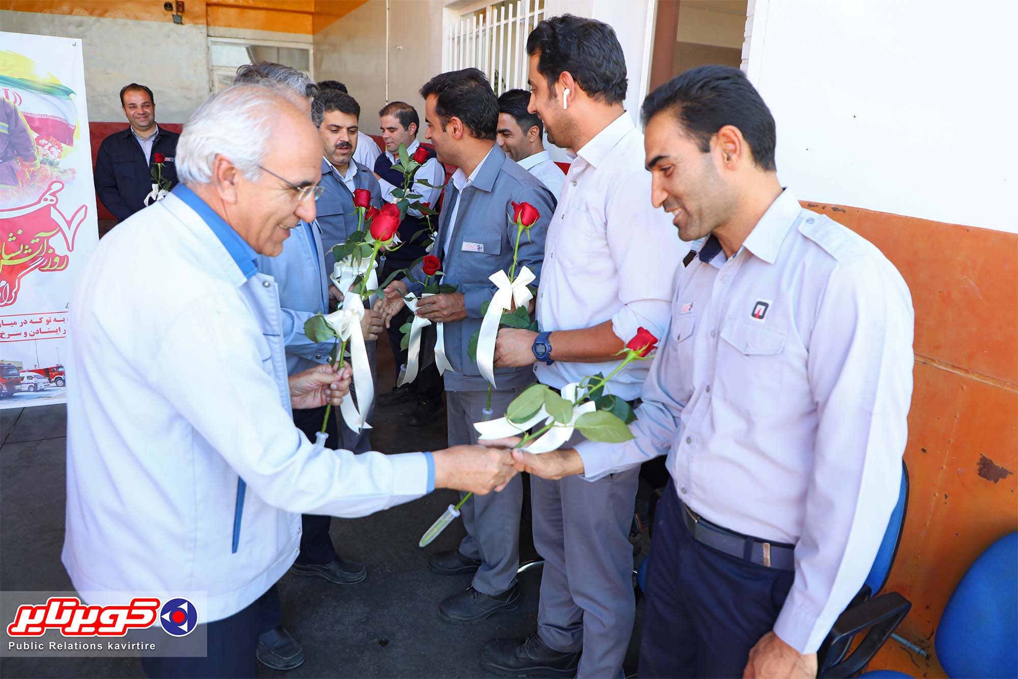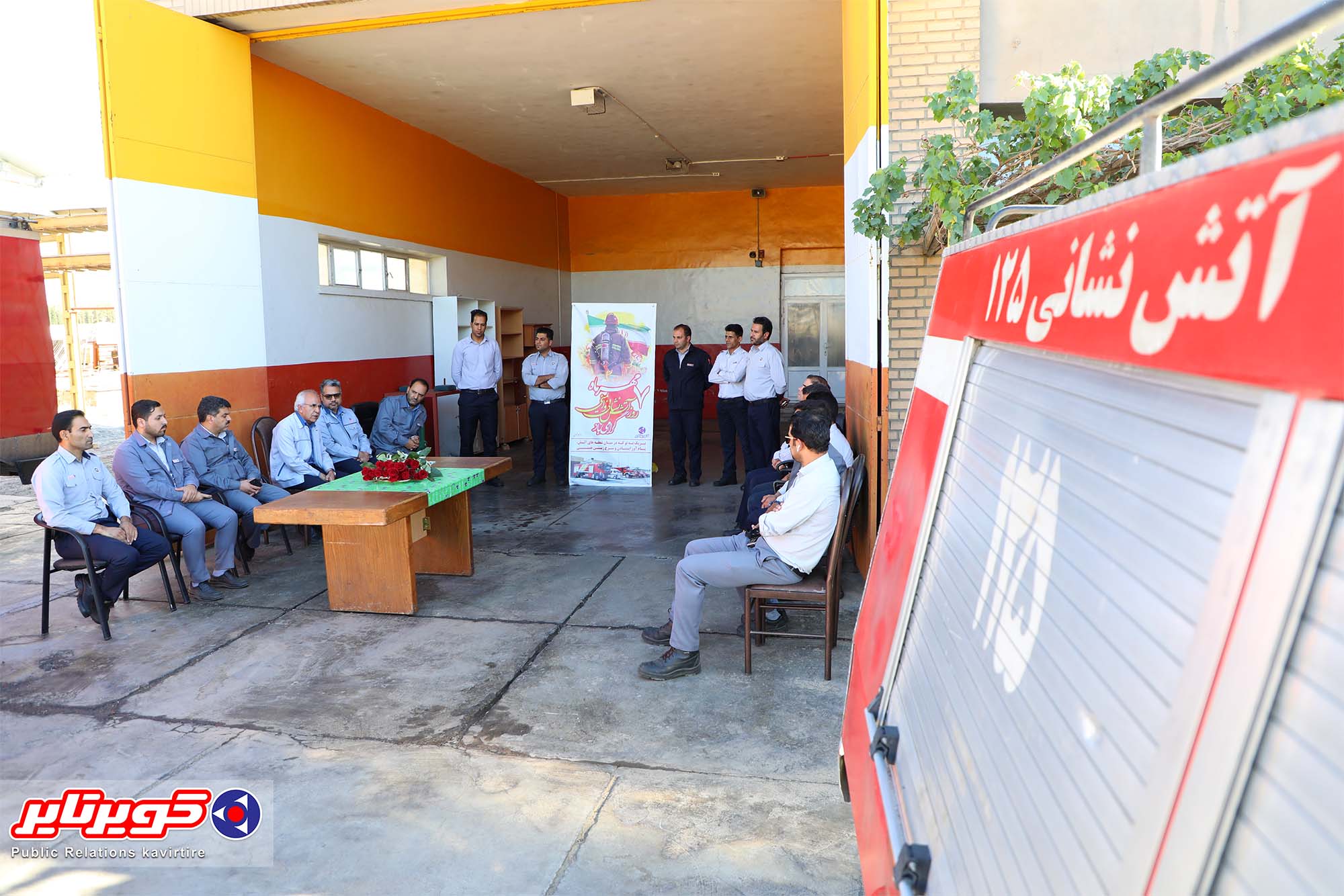 مدیرکارخانه،سرپرست ادارههای منابع انسانی و حراست و رئیس روابط عمومی به مناسبت7مهرماه روز ایمنی و آتش نشانی با حضور در قسمت آتش نشانی کارخانه ضمن عرض خداقوت این روز را به آتش نشانان پرتلاش کارخانه تبریک گفتند.
