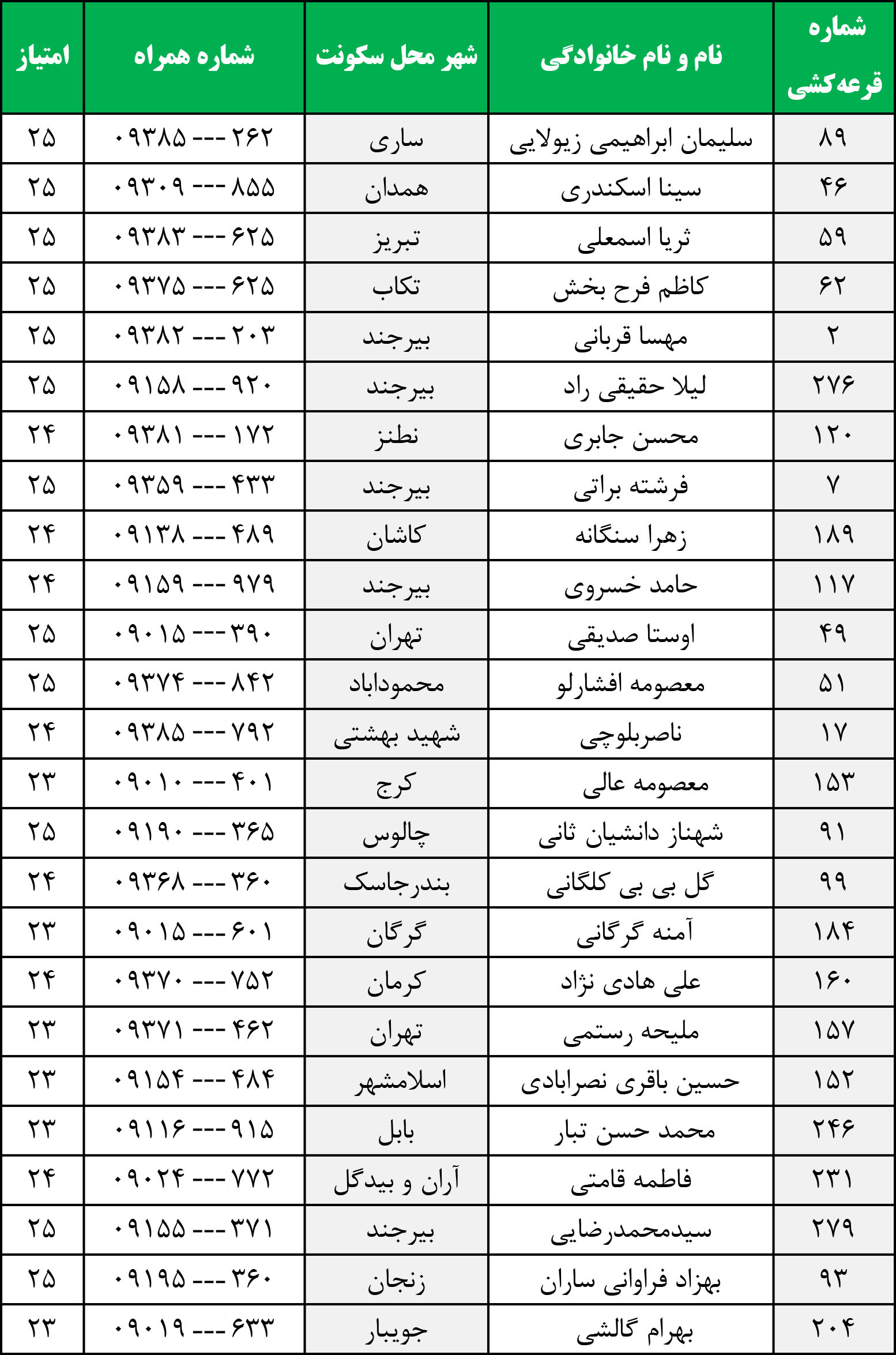 وی بیان کرد: در این مسابقه 1525 نفر از 200 شهر کشور مشارکت کردند که از این تعداد 289 نفر به مرحله قرعه کشی راه یافتند که با قرعه کشی 25 نفر به عنوان برنده نهایی مشخص شدند .