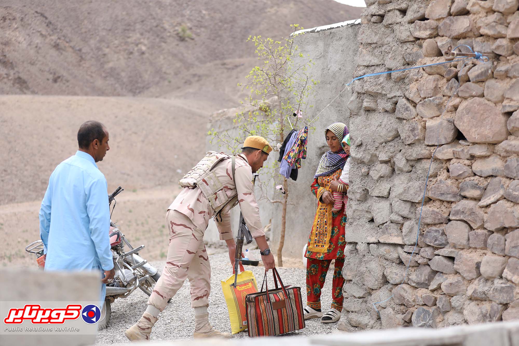 • توزیع بخشی از کمک های مومنانه توسط نیروهای مرزبانی در روستاهای چاهشولک و چادرهای عشایری بخش درح و نهبندان