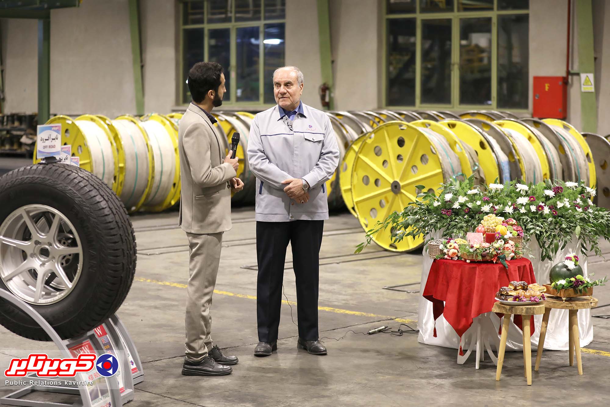 در شب یلدا بخشی از برنامه زنده «شب اناری» در گفت و گو با مهندس زینلی مدیرعامل شرکت دانش بنیان کویرتایر از خط تولید کارخانه کویرتایر به روی آنتن رفت