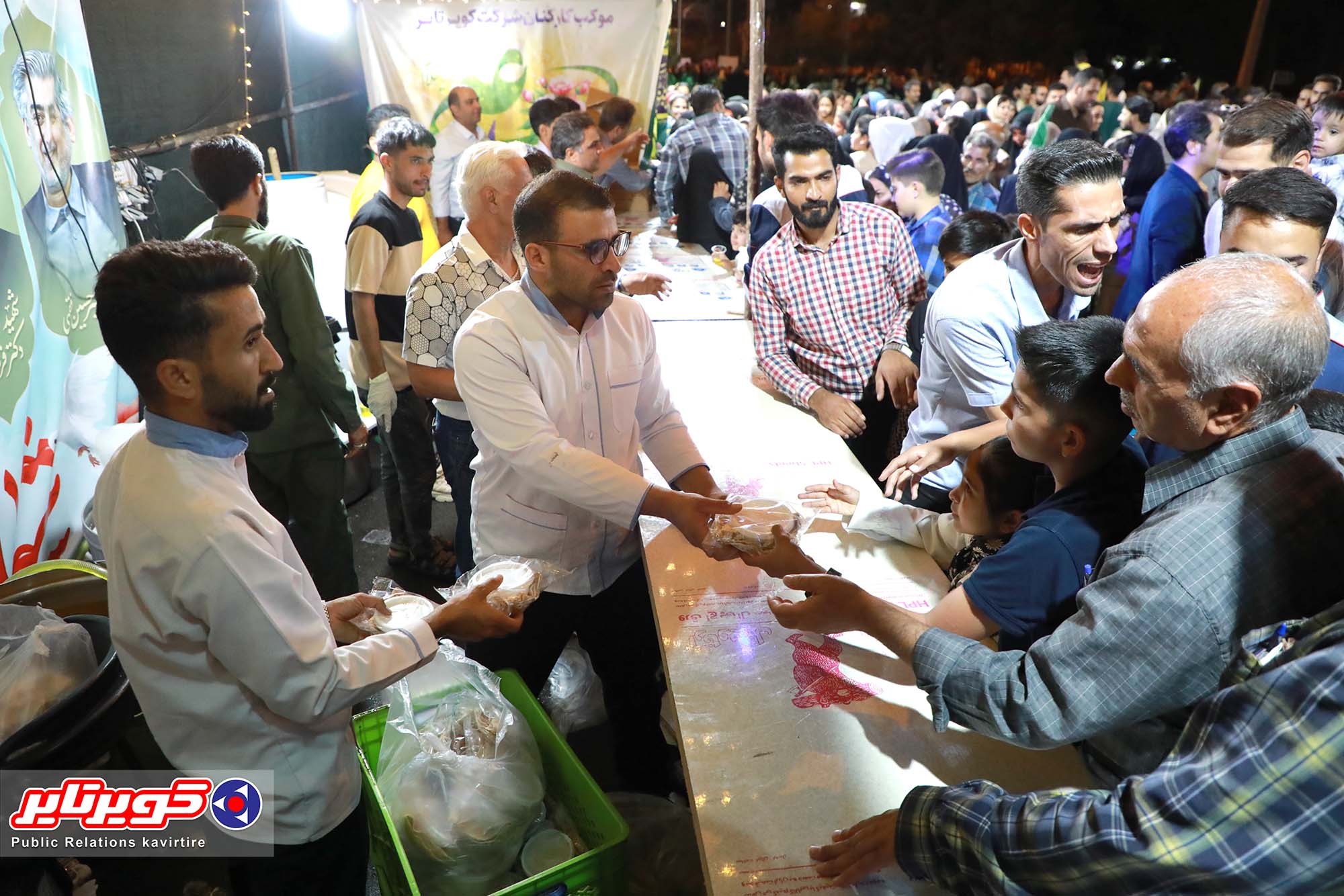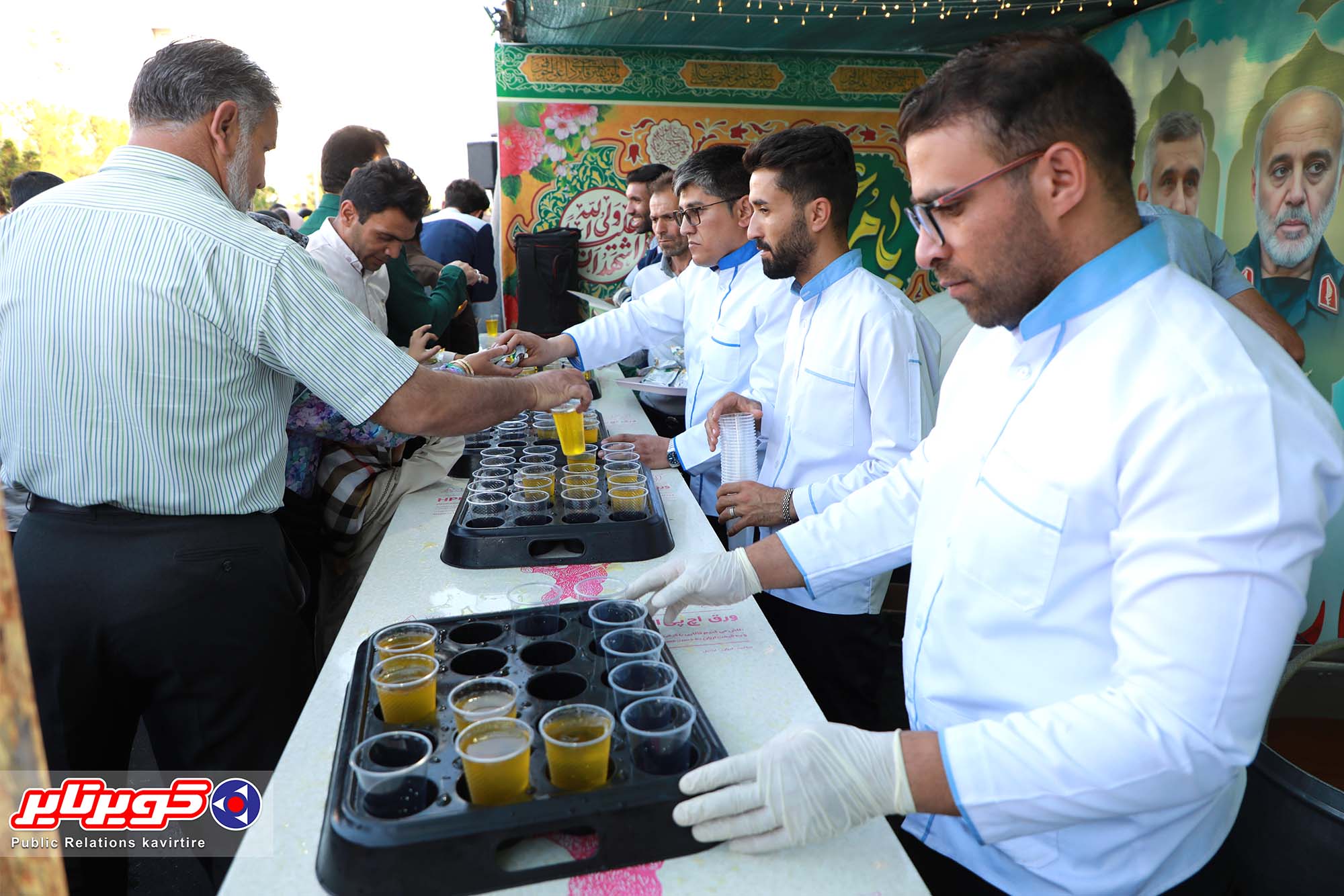 در موکب عاشقان ولایت کارکنان شرکت دانش بنیان کویرتایرکه عصر روز عید غدیر خم از ساعت 16 عصر تا 22 شب در خیابان پاسداران برپاشد بیش از 25 هزاربسته شربت و شیرینی توزیع و حدود 5 هزار نفراز مردم در این مهمانان کیلومتری اطعام شدند.