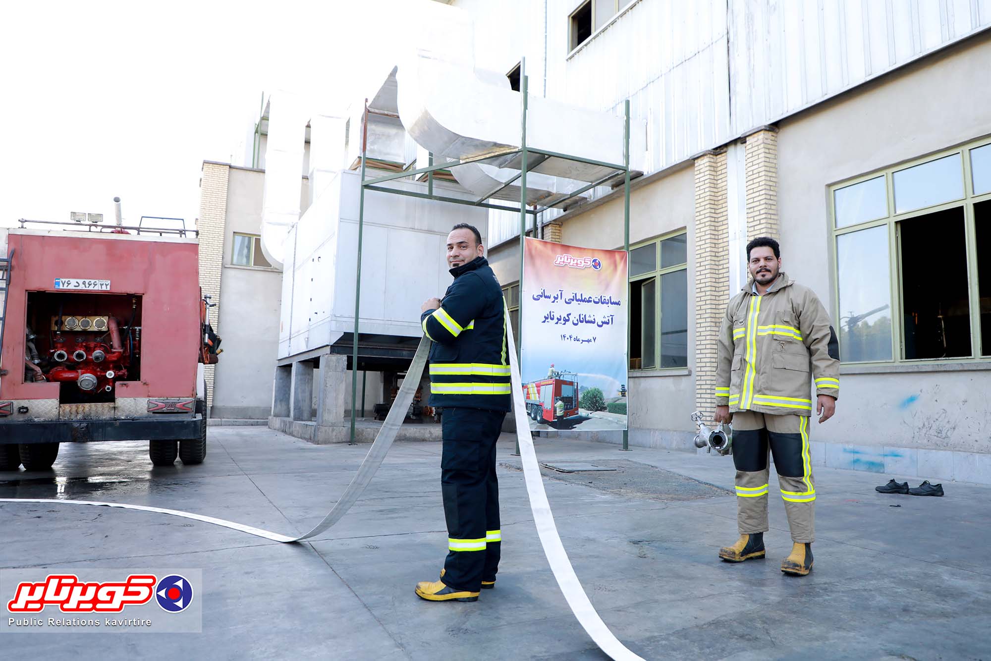 مدیر واحد ایمنی، آتش نشانی ومحیط زیست( HSEE) شرکت دانش بنیان کویرتایر در این مراسم گفت: این مسابقه بین چهار تیم ششنفره از پرسنل آتشنشانی برگزار شد و ملاک ارزیابی نیز سرعت آبرسانی بود که به طور معمول" زمان استاندارد برای این عملیات دو دقیقه در نظر گرفته میشود، اما خوشبختانه تمامی تیمها موفق شدند عملکردی فراتر از انتظار داشته باشند و در مدت حداکثر یک دقیقه و نیم عملیات خود را به پایان برسانند. این موضوع نشاندهندهی آمادگی بسیار بالای همکاران ما در شرایط اضطراری است.