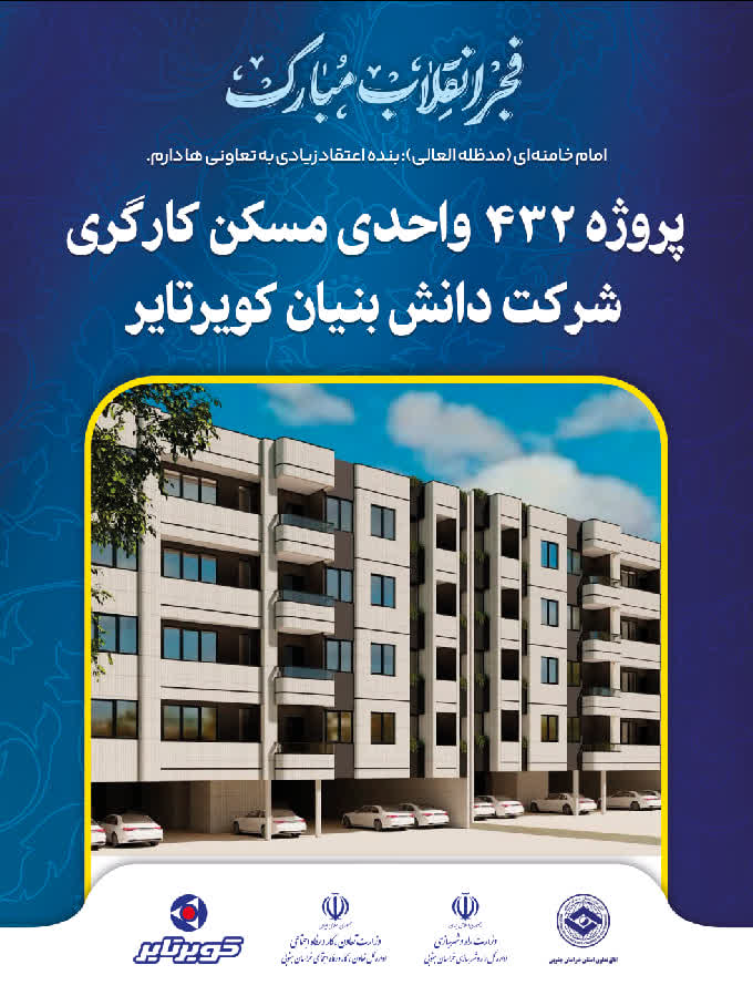 عملیات اجرایی پروژه ۴۳۲ واحدی مسکن کارگری شرکت دانشبنیان کویرتایر در مراسمی با حضور استاندار خراسان جنوبی مدیرکل تعاون ، کار و رفاه اجتماعی و راه و شهرسازی استان و جمعی از مسئولان استانی و شهرستان بیرجند آغاز شد