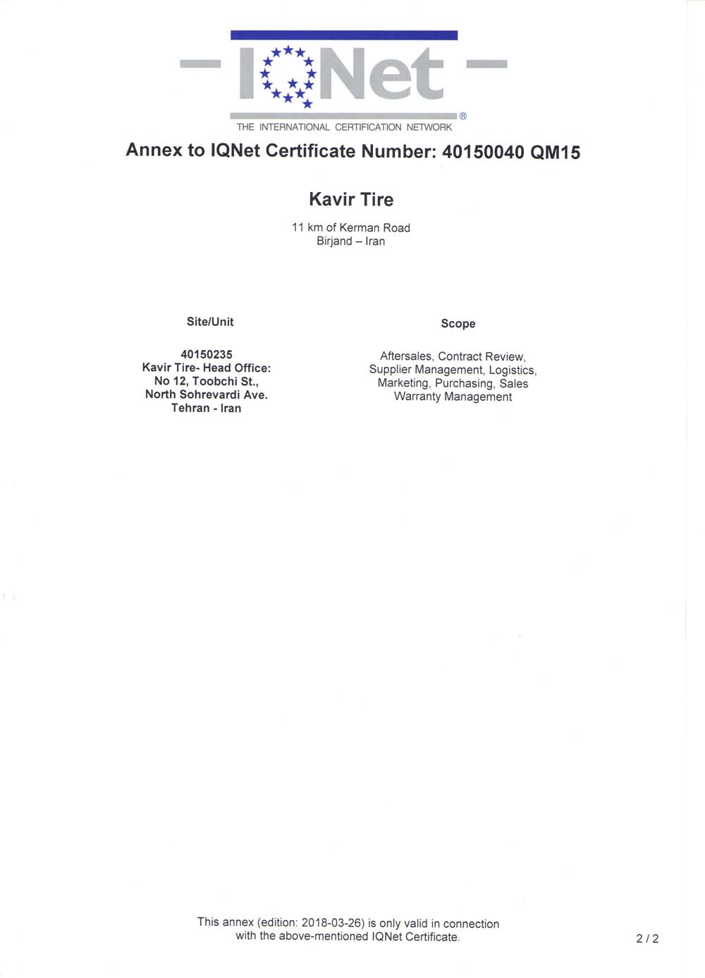 IQNet ISO 9001:2015 Certificate