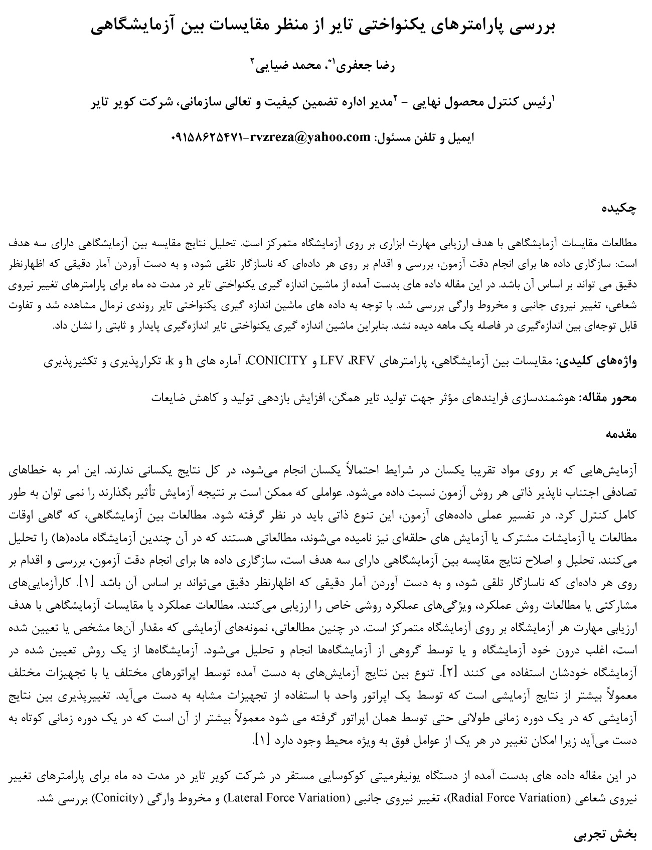 بررسی پارامترهای یکنواختی تایر از منظر مقایسات بین آزمایشگاهی