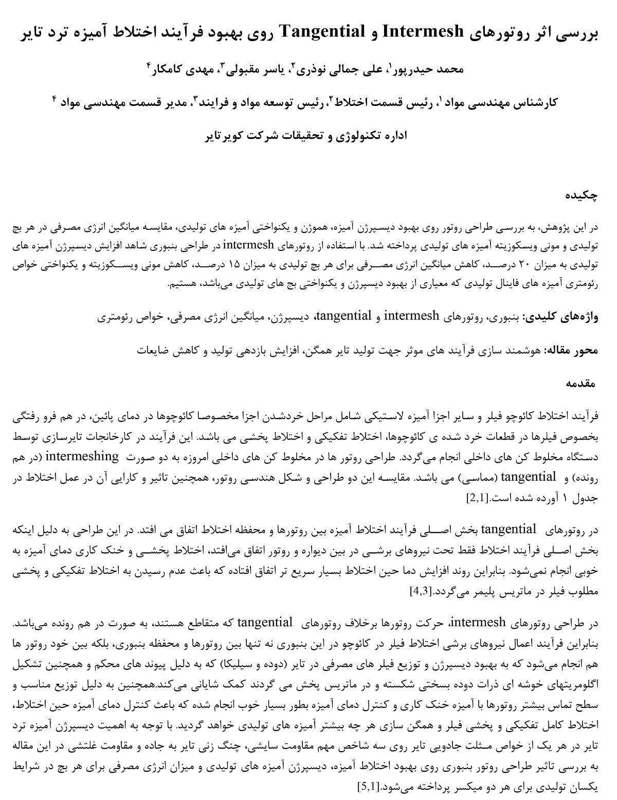 بررسی اثر روتورهای Intermesh و Tangential روی بهبود فرآیند اختلاط آمیزه ترد تایر