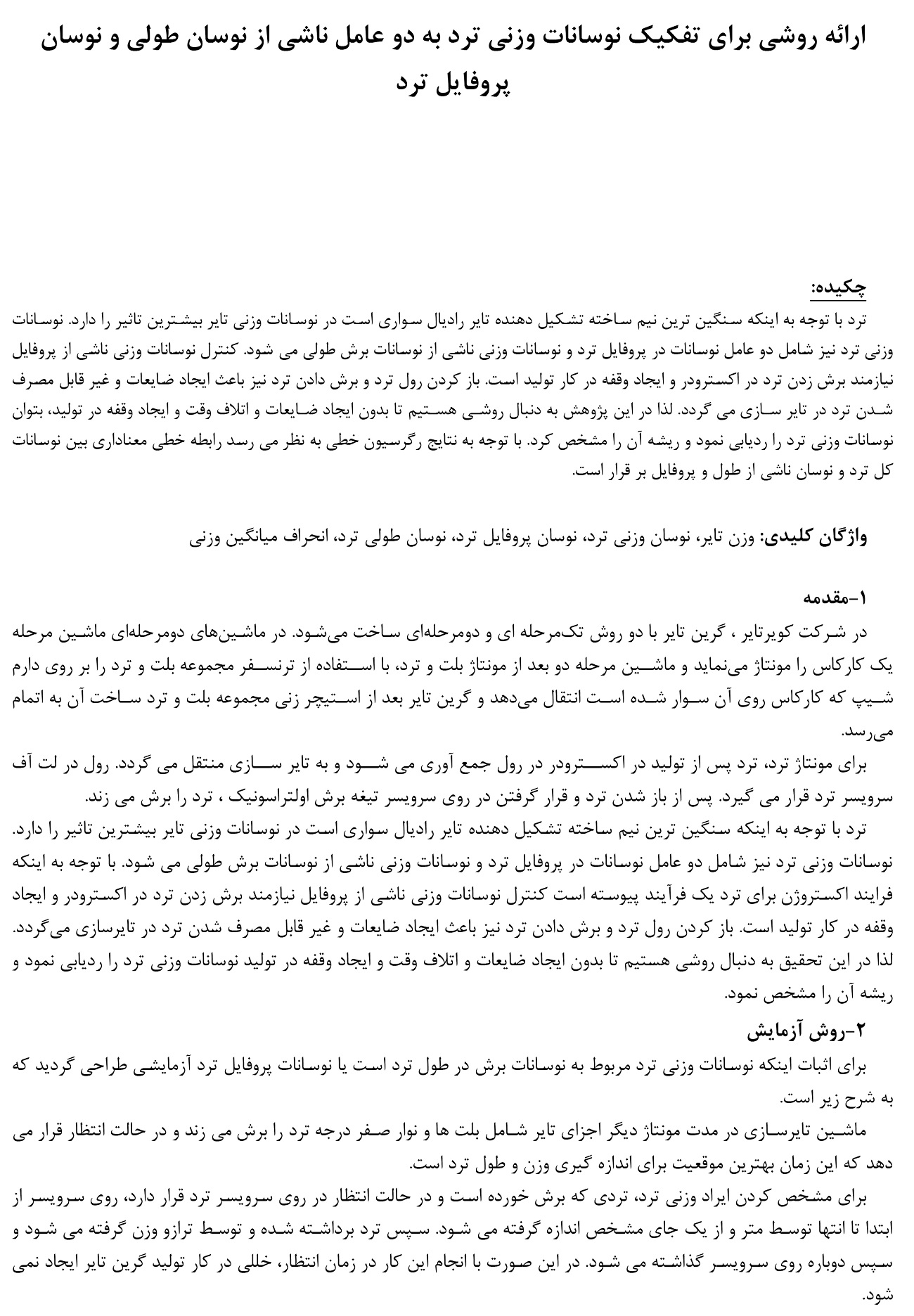 ارائه روشی برای تفکیک نوسانات وزنی ترد به دو عامل ناشی از نوسان طولی و نوسان پروفایل ترد ۴ مرداد ۱۴۰۴ ۴۲۳