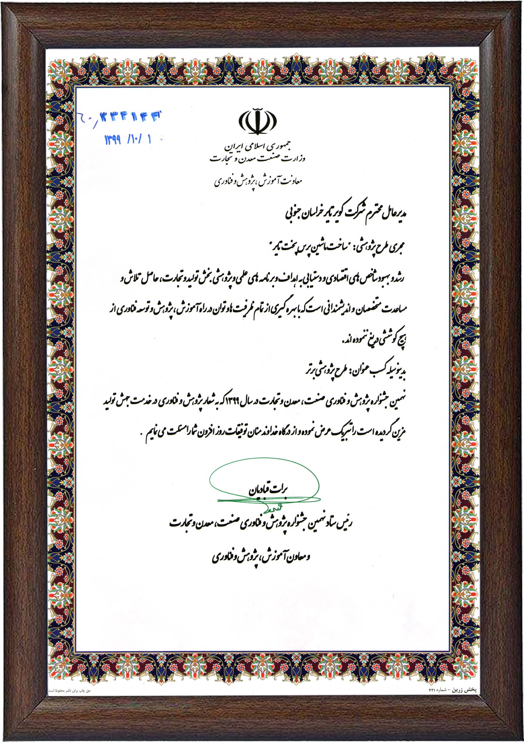 انتخاب واحد پژوهشی برتر کشور با عنوان ساخت ماشین پرس پخت تایر ۱۱ تیر ۱۴۰۱ ۲,۲۹۱ #گواهینامه و افتخارات 1400