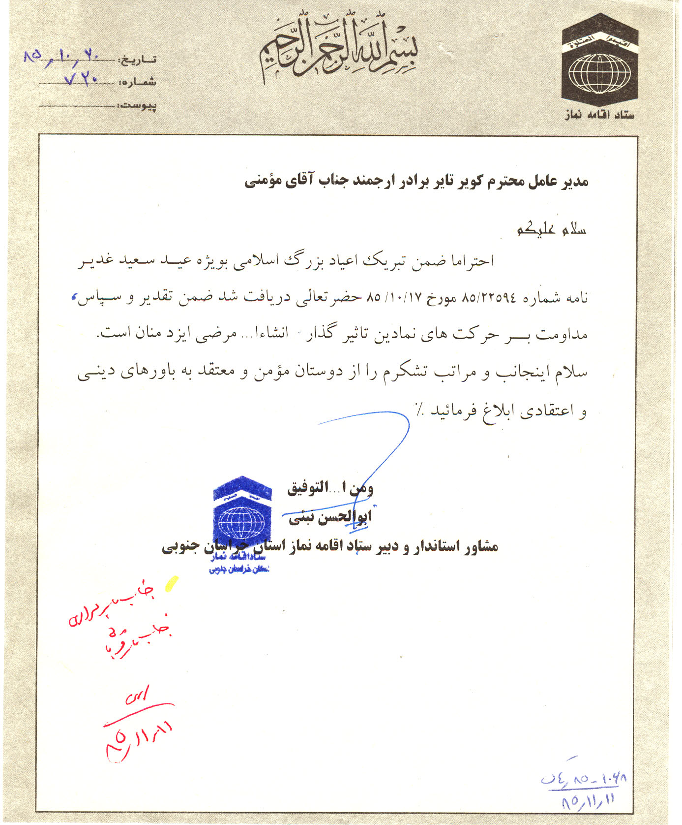 اعطای لوح تقدیر مشاور استاندار و دبیر ستاد اقامه نماز استان به مدیرعامل ۲۳ مرداد ۱۳۹۹ ۱,۶۳۱ #گواهینامه ها و افتخارات سال 1385