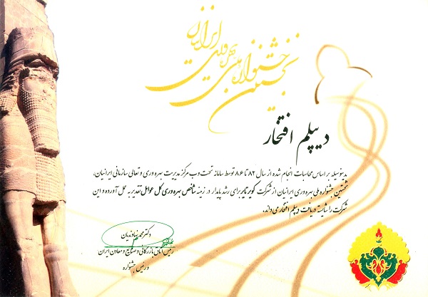 اعطای ديپلم افتخار و لوح تقدير جشنواره ملي بهره وري ايرانيان به کویر تایر ۲۹ مرداد ۱۳۹۹ ۱,۴۰۲ #گواهینامه ها و افتخارات سال 1388