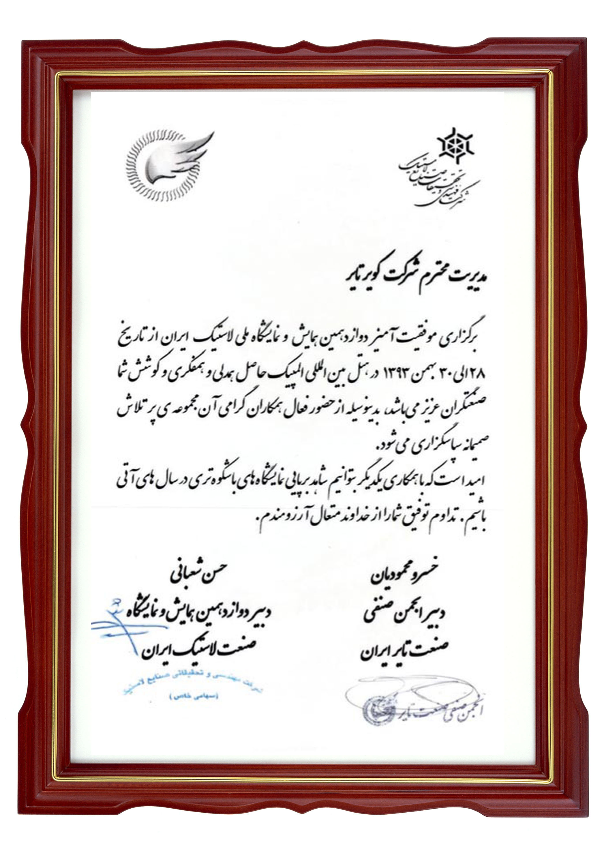 دریافت لوح تقدیر دبیر انجمن صنفی صنعت تایر و دبیر دواردهمین همایش ونمایشگاه صنعت لاستیک ایران ۱۸ شهریور ۱۳۹۹ ۱,۵۱۲ #گواهینامه ها و افتخارات سال 1393