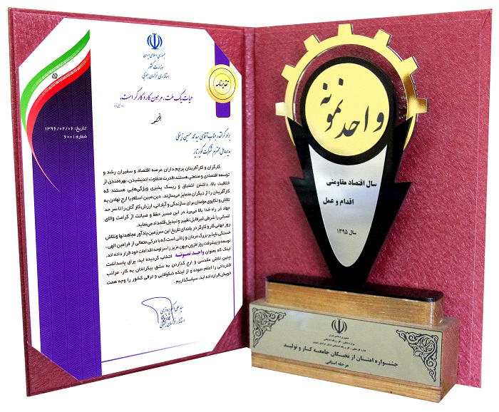 دریافت لوح و تندیس واحد نمونه کارگری سال 95 استان خراسان جنوبی