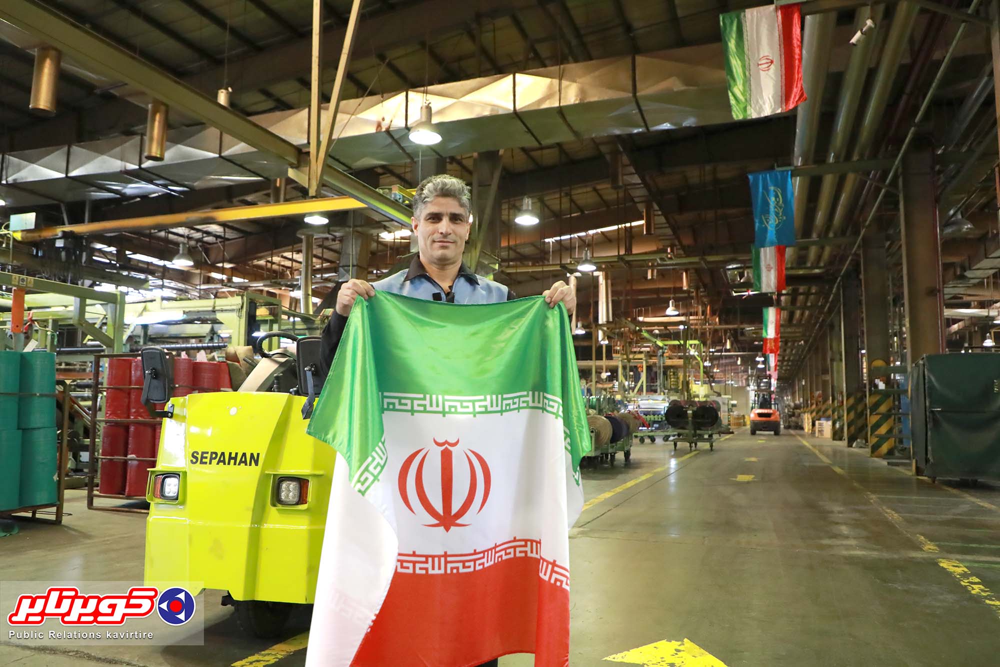 فضاسازی محیطی، نصب پرچمهای سهرنگ جمهوری اسلامی ایران و پیامهای انقلابی، جلوهای از شور، همبستگی و افتخار ملی را در میان کارکنان و کارگران این مجموعه صنعتی به نمایش گذاشت.